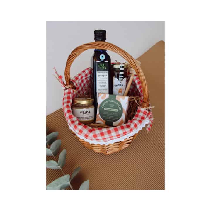 מארז שמביא את הטבע והאיכות של הצפון הישראלי עד הבית. שמן זית מובחר ממשק אחיה, ריבת תות שרדונה משובחת, ממרח פלפלים קלויים עשיר בטעמים, סבון טבעי מרענן וסלסלת רשת מעוצבת – כל מה שצריך לרגע של פינוק מקומי, אותנטי ומשמח."