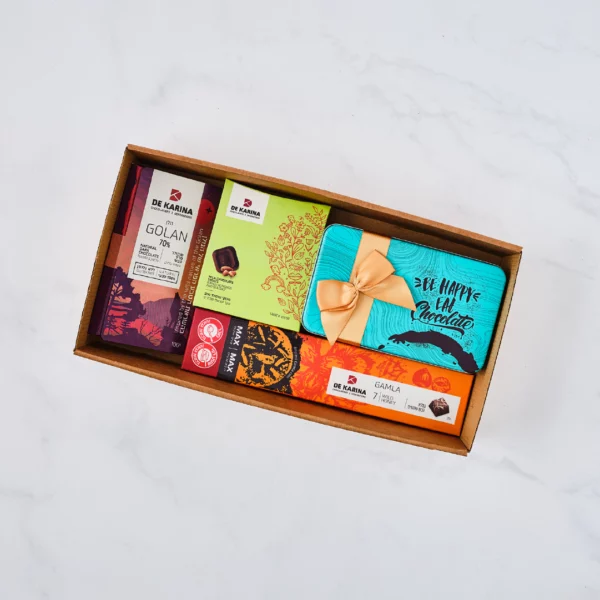 – מארז "גמלא" המכיל פרלינים איכותיים מאוד של שוקולד עם דבש ואגוזי לוז